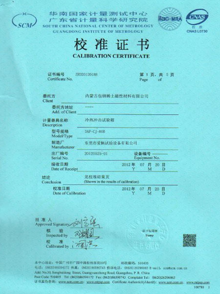 沖擊箱校準證書